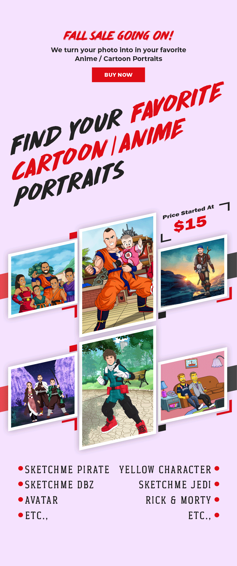 Get drawn as your favorite style. Choose from the multiple character options available!