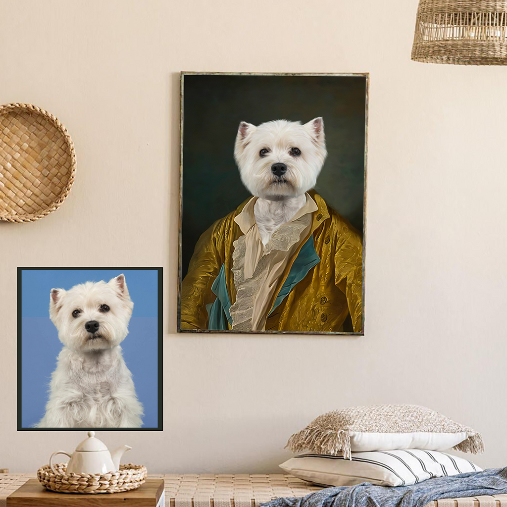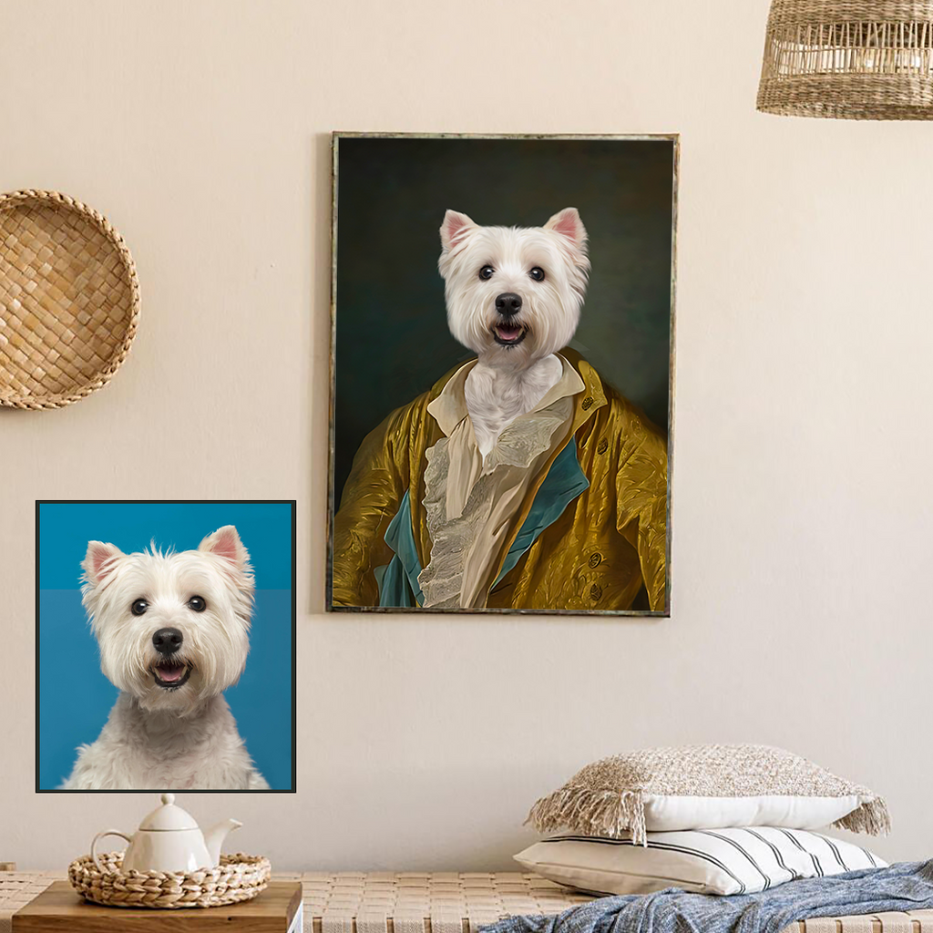 Whether your pet prances like nobility or melts hearts with princely charm, The Prince custom pet portrait captures their noble personality in a way you’ll treasure forever. Make their royal status official — because your home is their castle.
