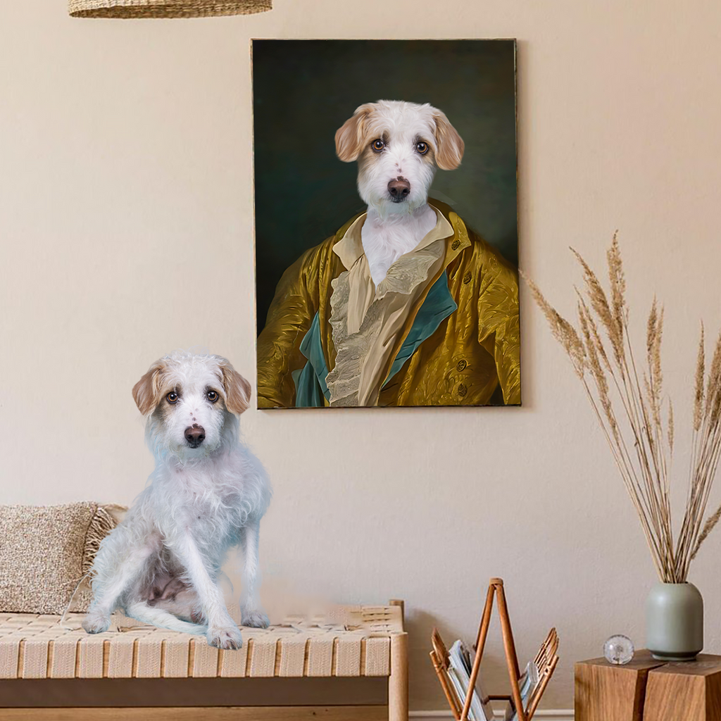 Every pet deserves to be treated like royalty — and with The Prince – Custom Pet Portrait, your furry friend becomes the star of the kingdom. Designed to capture grace, elegance, and just the right touch of mischief, this portrait transforms your pet into a dashing young royal with timeless charm.